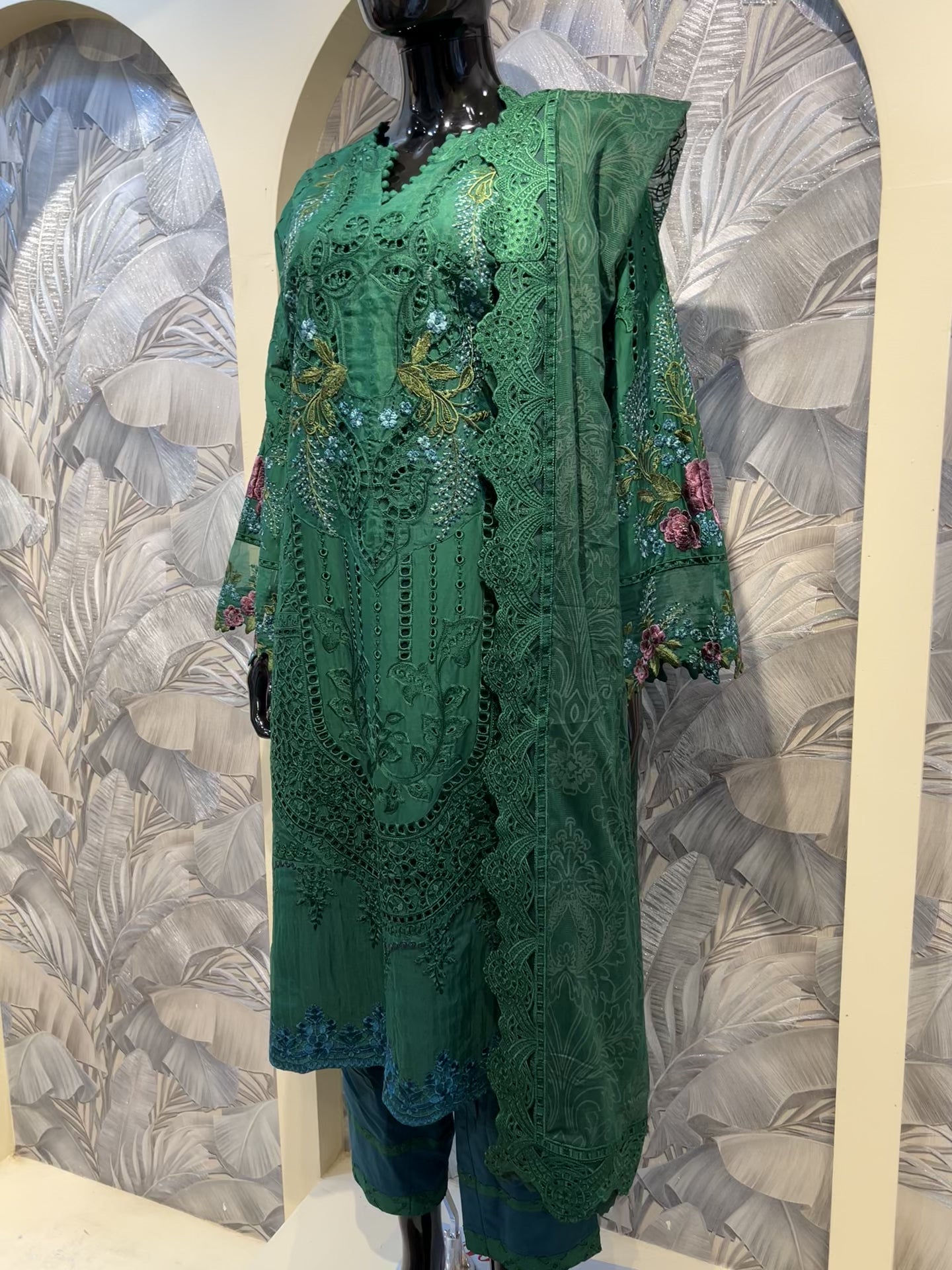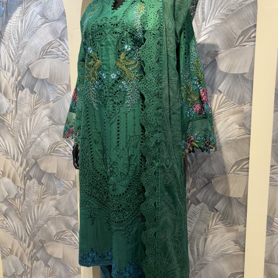 Green Cotton Cutwork Embroidered Suit with Dupatta