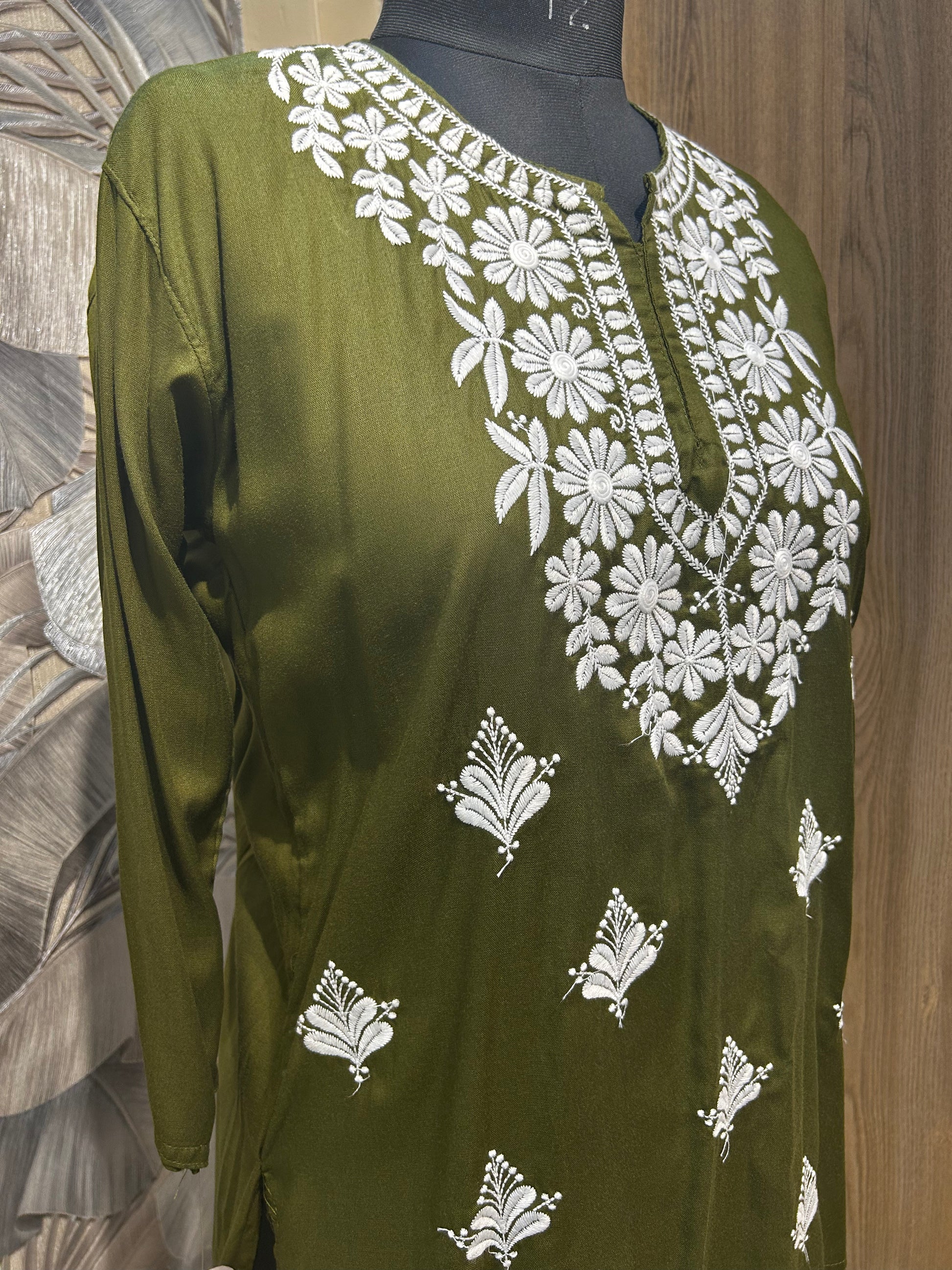 A beautiful harmony of nature and simplicity, this Pullman green cotton kurti stands out with its intricate white floral embroidery. Crafted on a breathable fabric, the design features delicate threadwork across the neckline and body, adding a touch of refined grace. Lightweight and effortlessly elegant, it’s perfect for day wear, casual outings, or festive mornings where comfort meets charm.