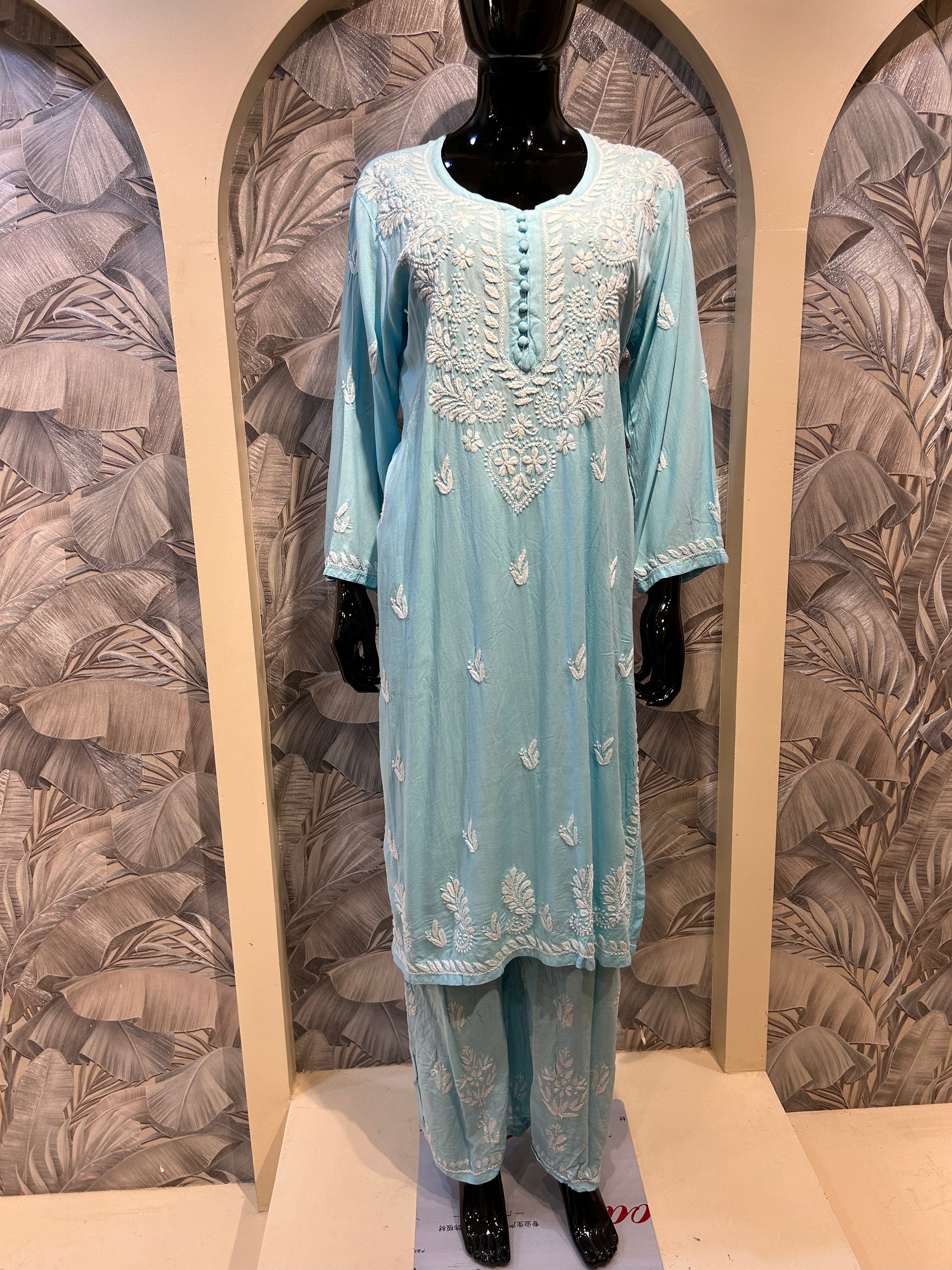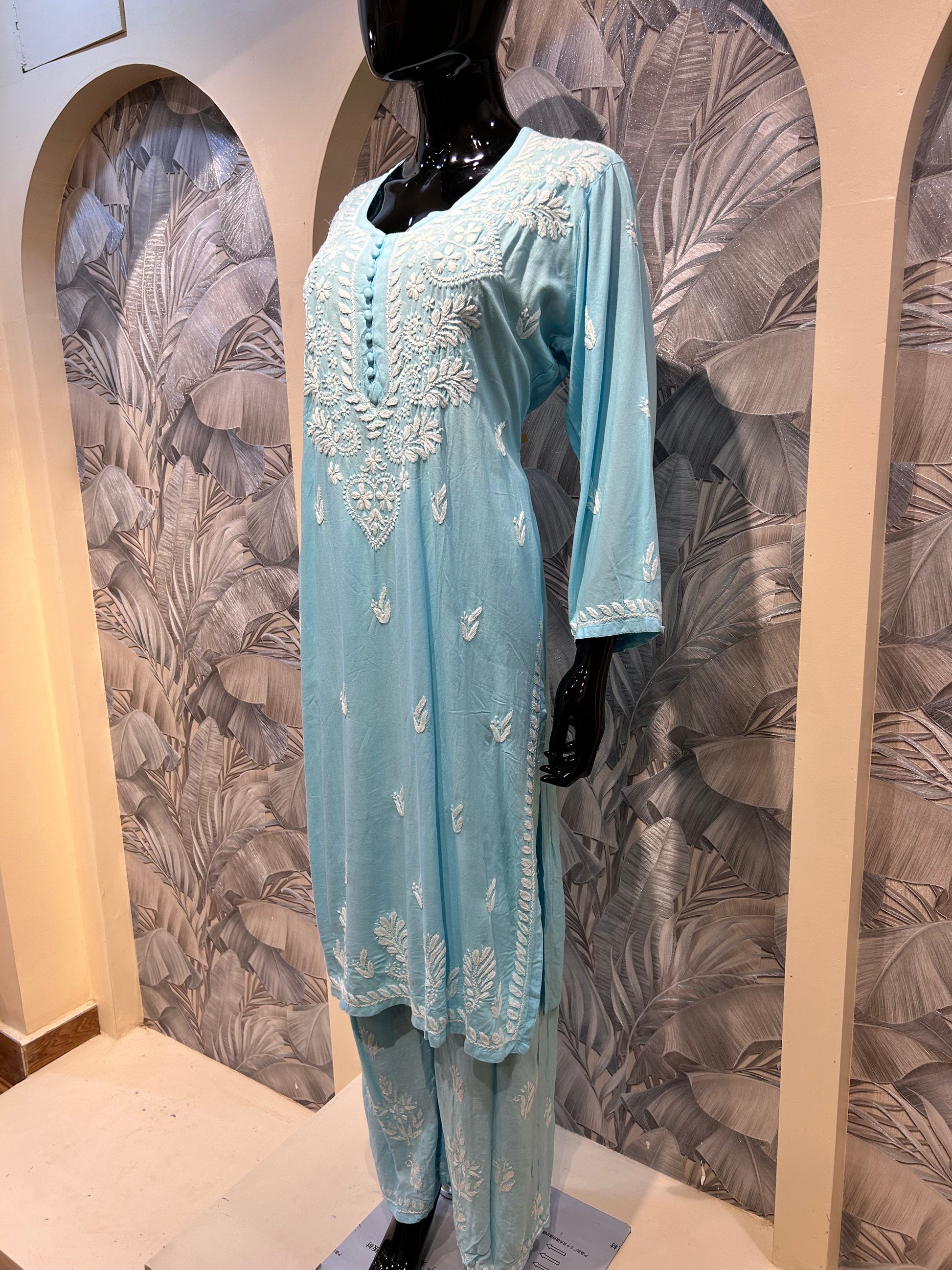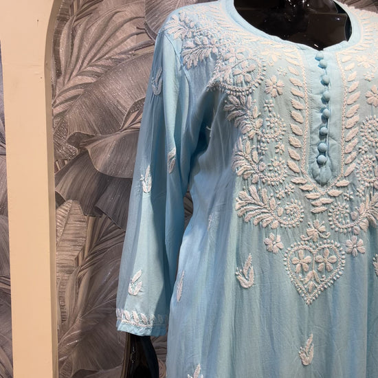 Water Blue Cotton Chikankari Kurta Set