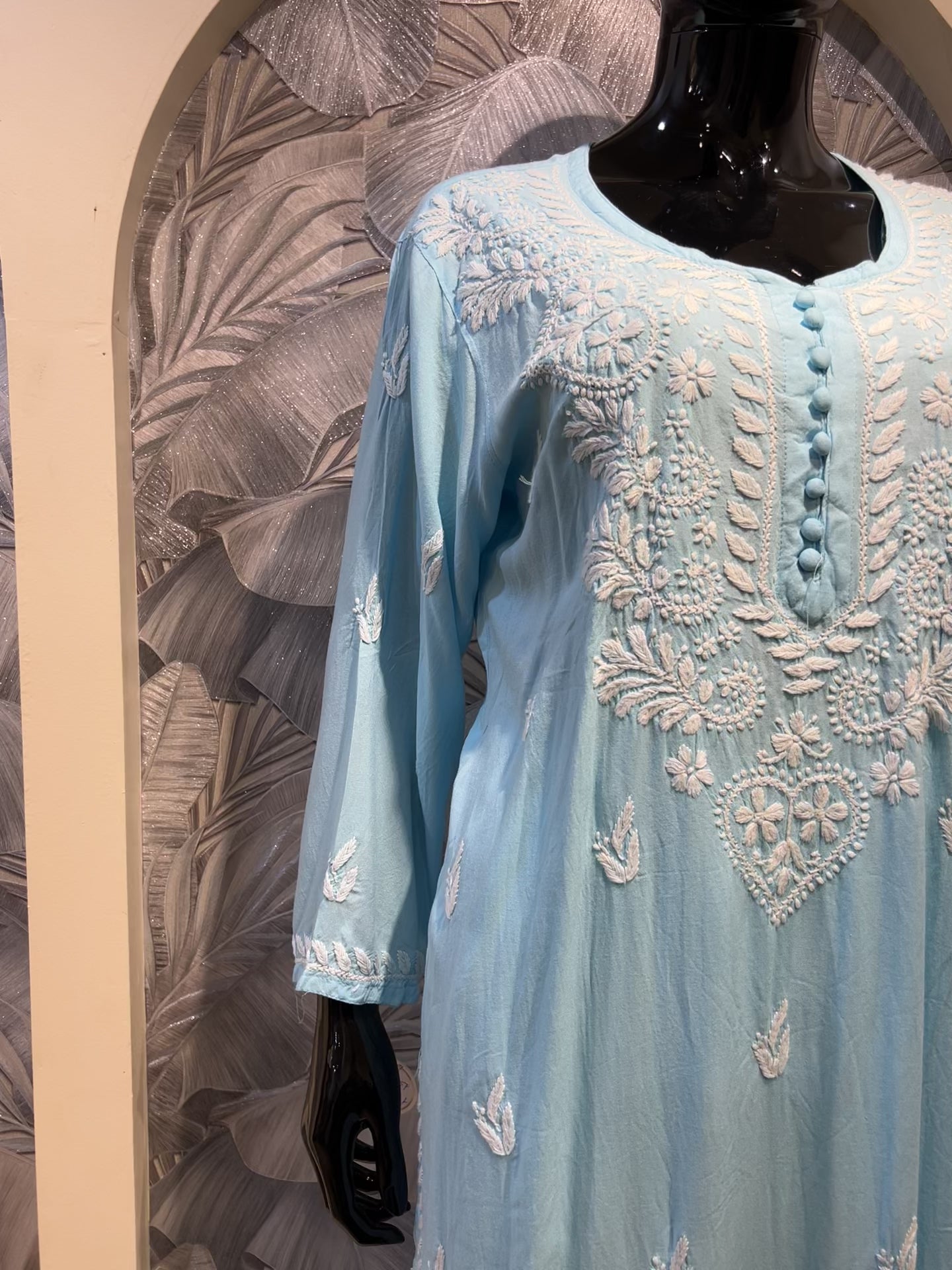 A serene water blue cotton kurta set detailed with exquisite white chikankari embroidery. The soft hue paired with delicate handwork exudes freshness and calm, perfect for summer wear or relaxed gatherings. Crafted from breathable cotton, it combines elegance with effortless comfort, making it a versatile addition to your ethnic wardrobe.